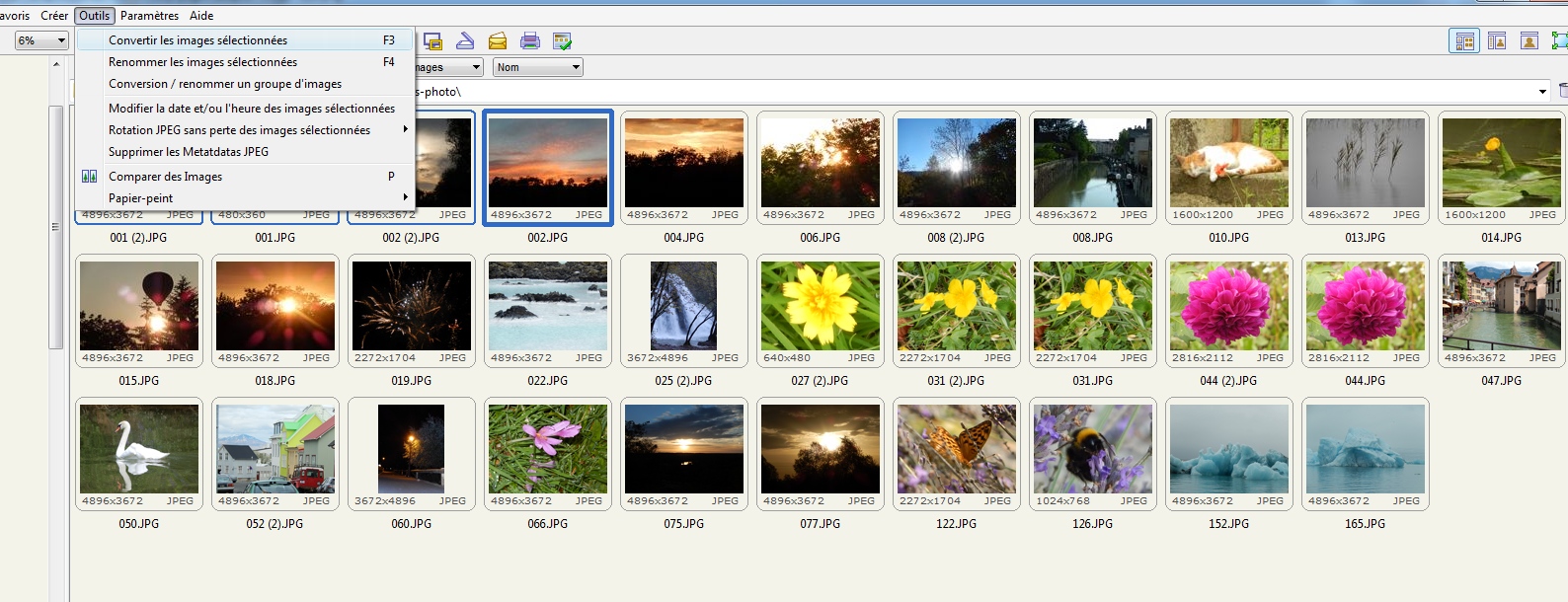 - III. Cliquer sur l'onglet "Outils" puis "Convertir les images sélectionnées" ;